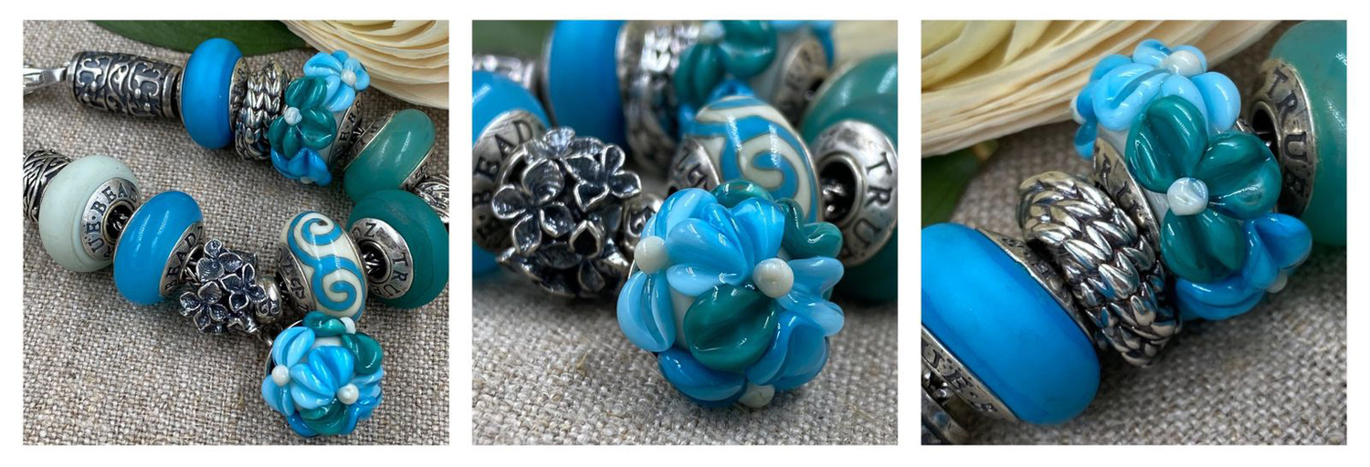 If you need assistance in putting together your own Turquoise raised flowers bracelet and finding a perfect replacement bead for any of the items below, please do not hesitate to contact us here or via social media.